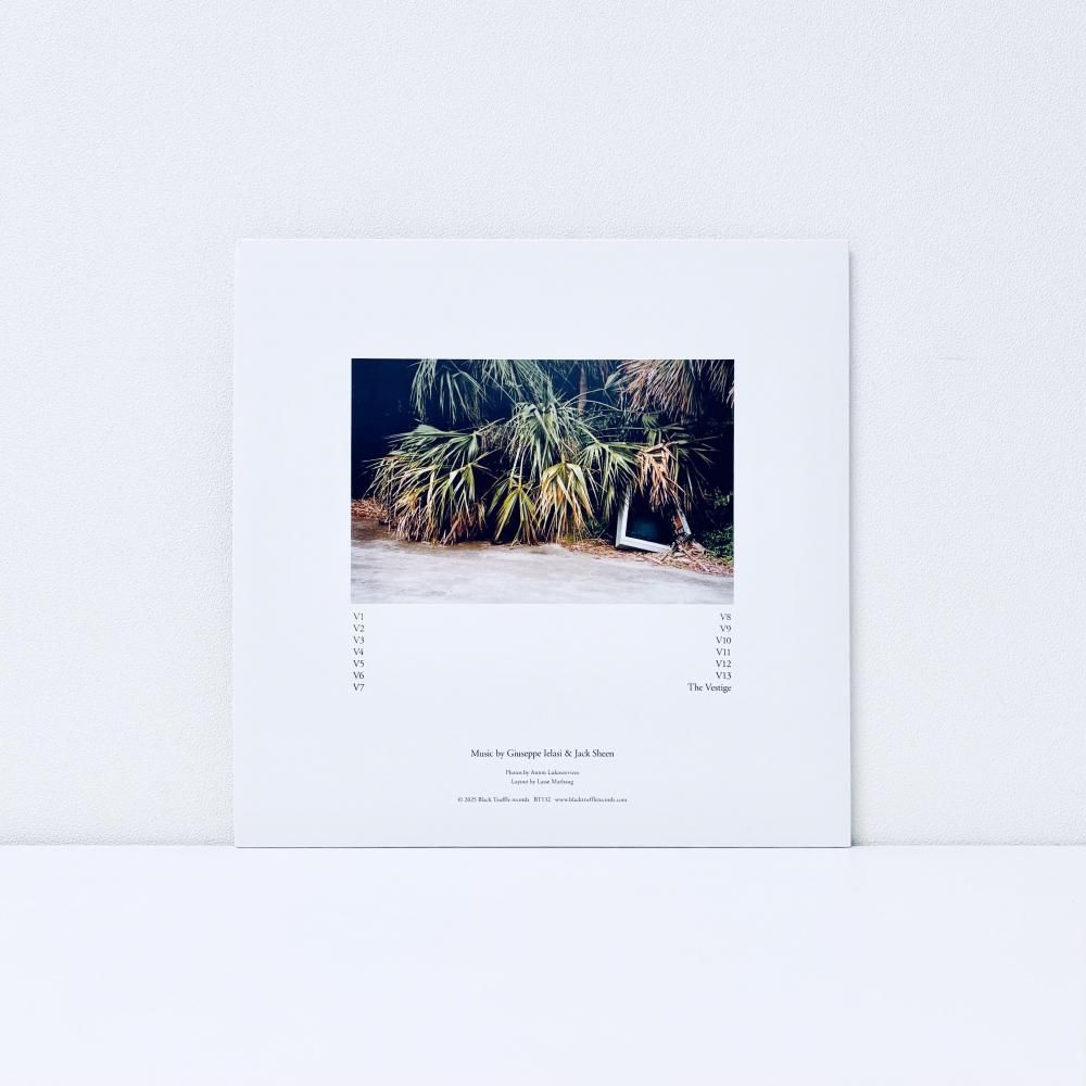 20年以上にわたりヨーロッパの実験音楽シーンを牽引してきたイタリアのGiuseppe Ielasiと、マンチェスター出身の作曲家/指揮者/サウンドアーティストであるJack Sheen。本作は、ギターと電子音響を探求してきたIelasiと、オーケストラやアンサンブル作品を手がけてきたSheenという異なる背景を持つ二人が、「神秘的で境界的な音楽素材」への共通の関心から生み出した作品です。制作は、Sheenが提供したアコースティック素材にIelasiがギターのスケッチを重ねることから始まり、スタジオでそれらの断片を丹念に磨き上げ、13曲のシーケンスを完成させました。素材はほとんど原型を留めないほど巧みに加工され、音そのものの質感と魅力が際立っています。作品はアコースティックとエレクトロニックの境界を自在に行き来し、**音域や質感の幅を自由に広げながら**、繊細で曖昧な音響空間を描き出します。耳を澄ますと、各音の微細な揺らぎや共鳴が浮かび上がり、聴き手を魅惑的で不確かな世界へと誘います。Oren Ambarchi主宰のレーベル【Black Truffle】からのリリース。[GRRRDEN]