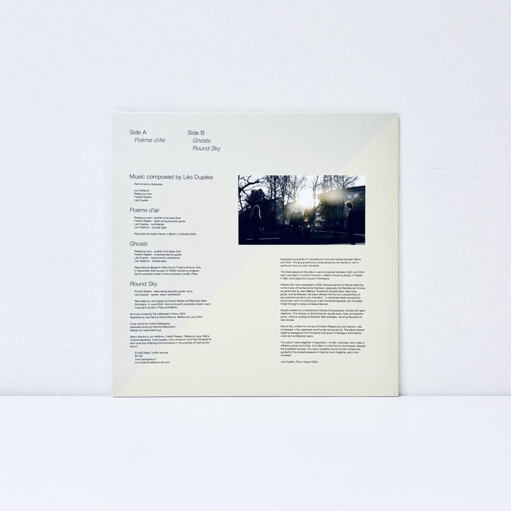 フランスの作曲家 Léo Dupleix が、Jon Heilbron、Rebecca Lane、Fredrik Rasten とのアンサンブル *Asterales* とともに紡ぎ出す、繊細で深遠な瞑想的サウンドスケープ。アナログ・シンセサイザー、チェンバロ、スピネット、ベース、フルート、ギター。それぞれの楽器が息を潜めるように繊細な音色を放ち、ミニマルで美しい響きと、倍音のゆらぎが静かに重なり合う本作。純旋律の美学が描くその音像は、まるで静かな水面にそっと差し込む光の反射のようです。収録された3曲は、静かな冬の気配から雪解けの春へと歩みを進めるように、ゆっくりと表情を変えながら、聴き手を穏やかな深みへと誘います。緻密でありながら、直感に寄り添う開かれた美しさ。静寂と光が共存する清らかな一枚です。[GRRRDEN]